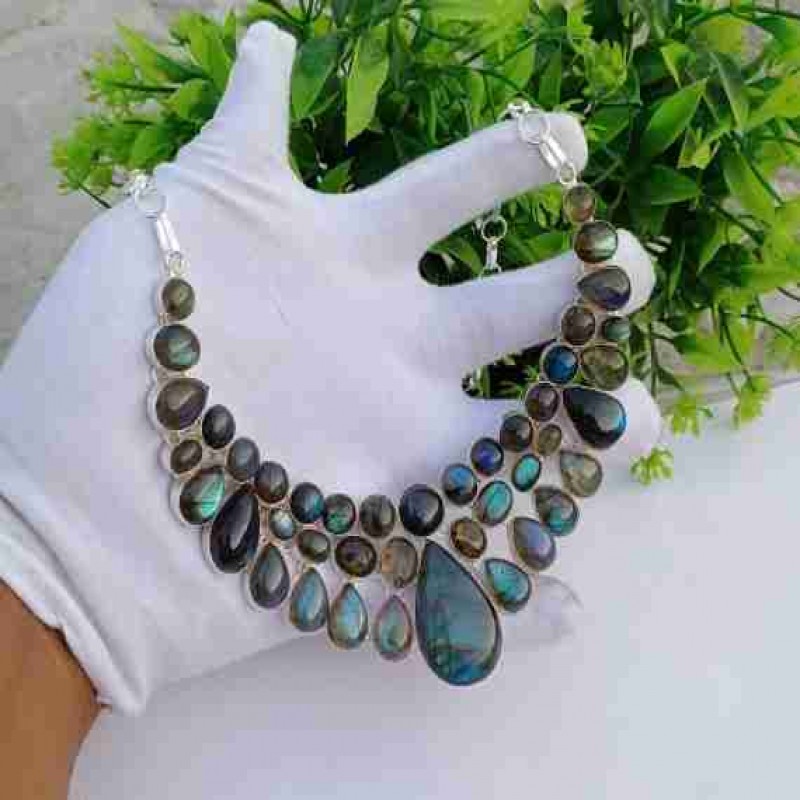 Doğal Labradorit Kolye, gümüş kaplama kolye, Boho Kolye, Kadına Hediye, İfadeli Kolye