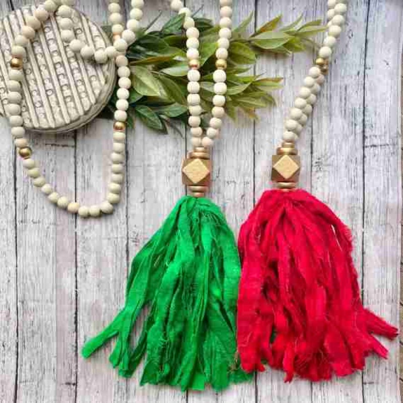 Kırmızı püskül kolye, Kırmızı Kumaş Püskül kolye. İpek kumaş püskül. Noel püskülleri. NC Eyaleti. UGA Gürcistan Kırmızısı. Kumaş Püskül Kolye.