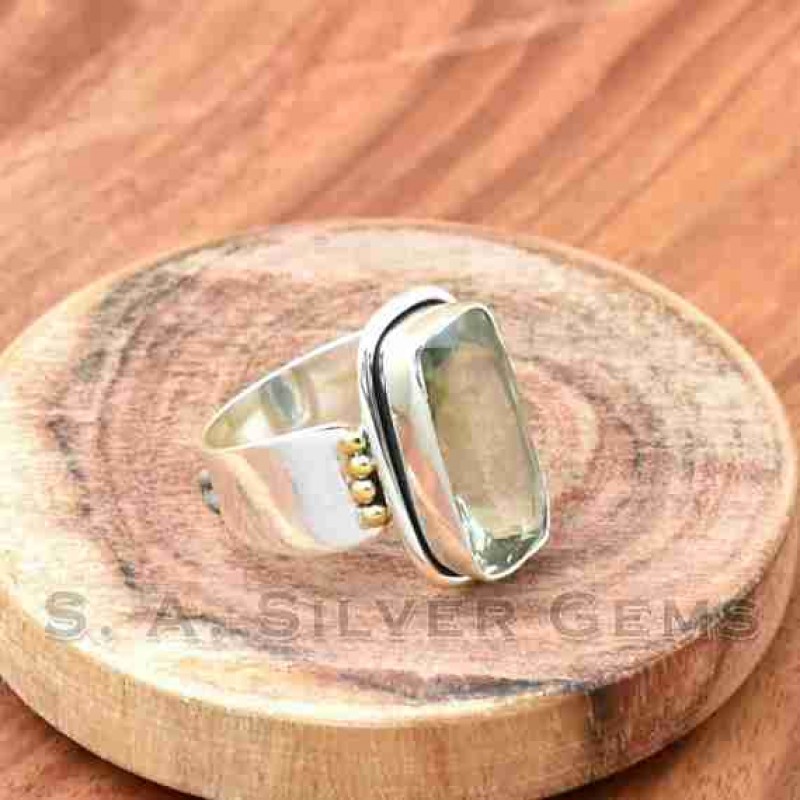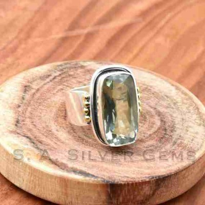 925 Ayar Gümüş Yüzük, Doğal Yeşil Ametist Yüzük, Geniş Bant Yüzük, İki Ton Yüzük,Alyans,Ge
