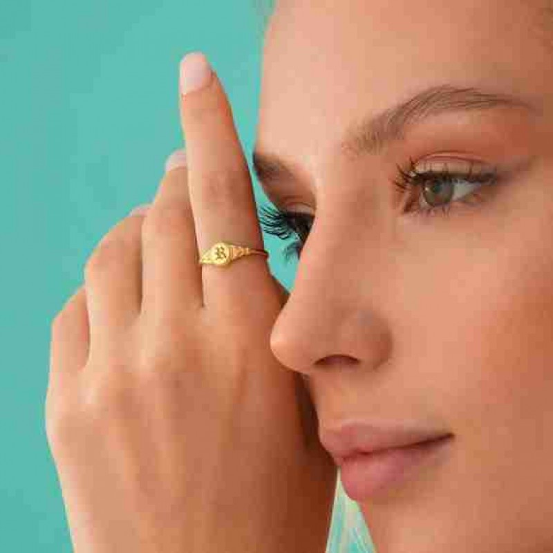 Kişiye Özel Vintage Gotik Yüzük, Özel Harfli Mühür Yüzük, Zarif gotik takılar, Kişiye Özel Hediye