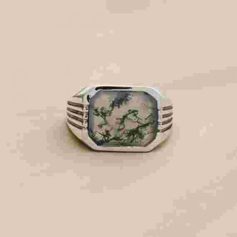 Doğal Yosun Akik Yüzük, 925 Ayar Gümüş Yüzük, Yosun Akik Erkek Yüzük, Söz Yüzüğü, Kendisine Hediye 1050.0 TL |