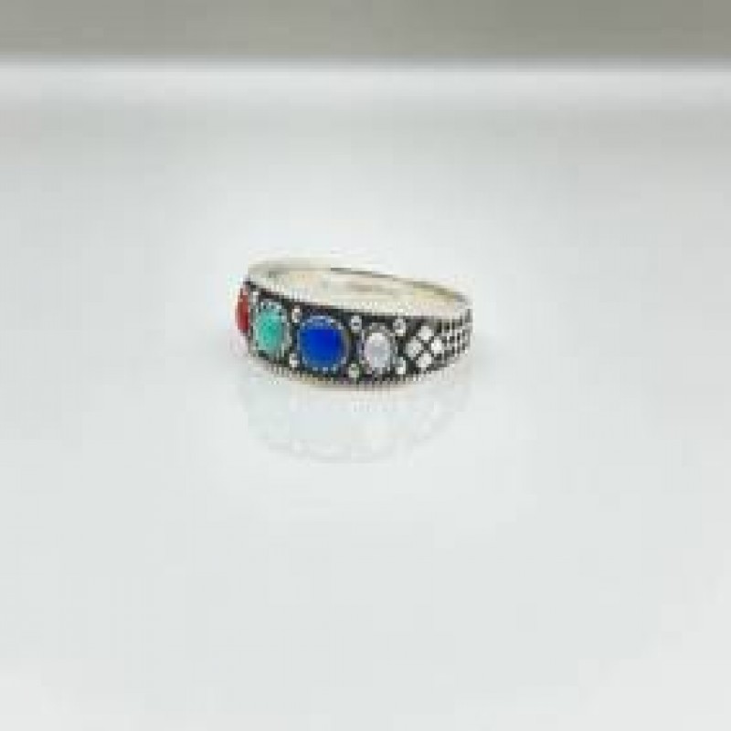 Çok Taşlı Gümüş Yüzük // 925 Ayar Gümüş // 5'ten 10'a Kadar Ölçüler