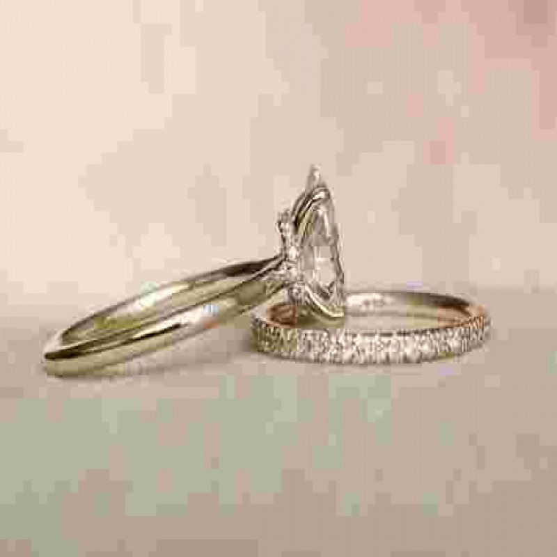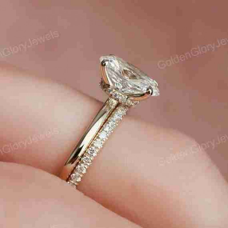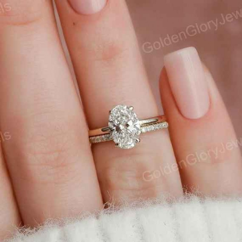 2 Ct Oval Kesim Mozanit Alyans Seti, Mozanit Nişan Yüzüğü Seti, Vintage Gelin Seti, Art D 10881.5 TL |