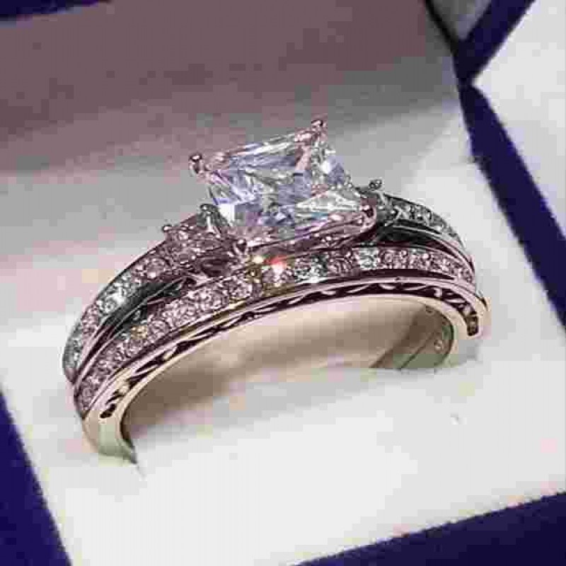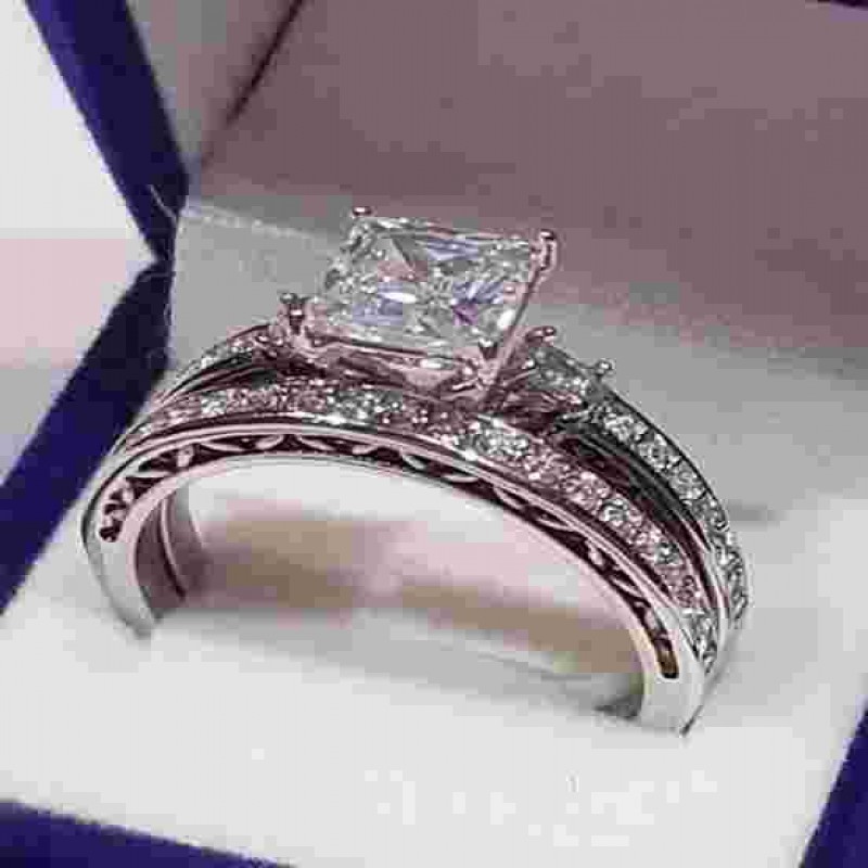 Tasfiye Satışı 2.50 Ct Prenses Tektaş Nişan yüzüğü yarım Sonsuzluk Bandı Alyans seti cz Sta 1606.5 TL |