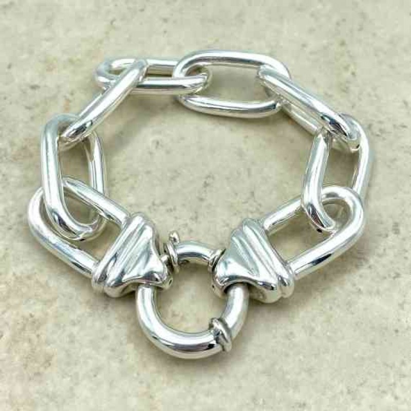 Mücevher koleksiyonunuzu birinci sınıf 925 ayar gümüşten ustalıkla hazırlanmış zarif bilekliğimizle yükseltin. Bu zarif parça, zamansız ve sofistike bir görünüm sunan 7,5 inçlik oval zincir bağlantı tasarımına sahiptir. Bileziğin ortasında, güvenli bir kapatma ve iddialı bir vurgu sağlayan belirgin bir yaylı halka toka bulunur. Her bağlantının içi boş olduğundan, bileziğin dayanıklılığını korurken günlük kullanım için hafif ve rahat kalmasını sağlar. Bileklik, orijinalliğini ve saf gümüş kalitesini garanti etmek için '925' damgasına sahiptir. Bu zarif aksesuar, klasik tarz ile modern lüksün karışımından hoşlananlar için ideal bir seçimdir.