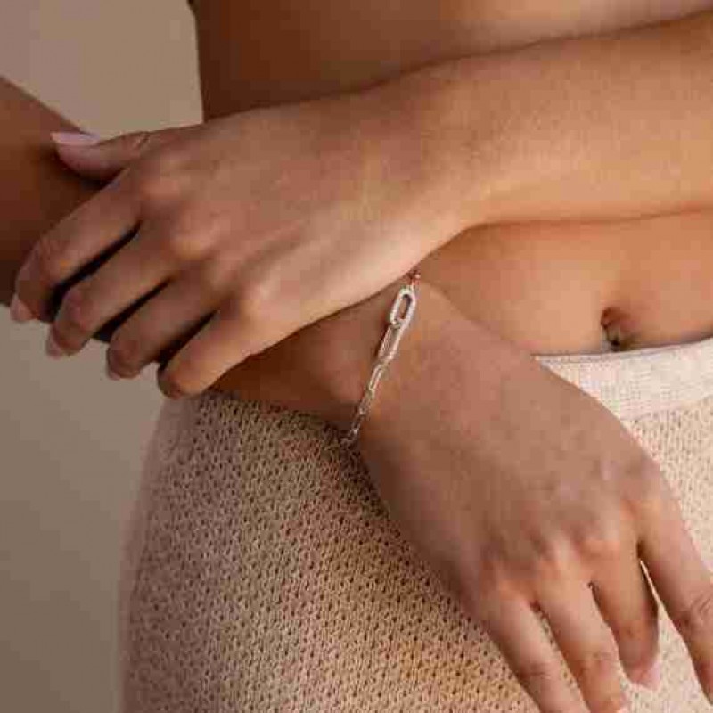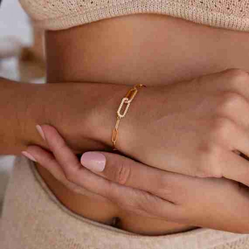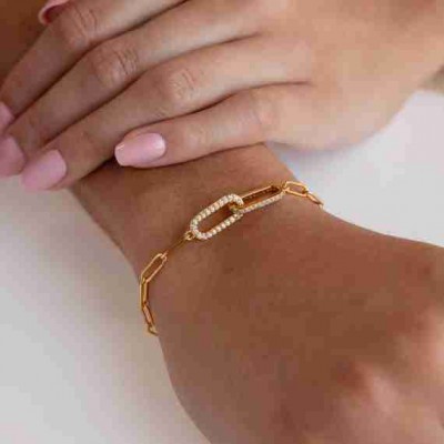 Caitlyn Minimalist'ten Pave Pırlanta Bağlantılı Bileklik • Zarif Ataçlı Zincir Bileklik • Minimalist