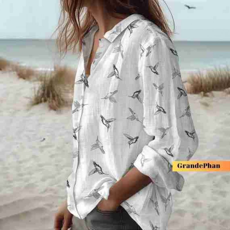 Sinek Kuşu Gömlek, Sinekkuşu Keten Gömlek, Bayan Giyim, Keten Bluz, Bayan Gömlek, Hummingb