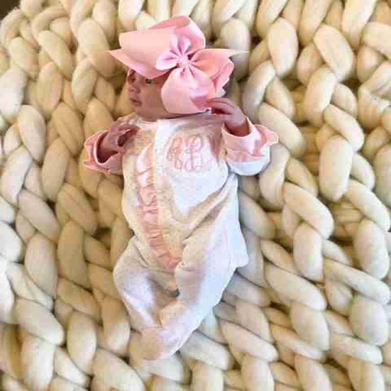 Kız bebek eve dönüş kıyafeti, monogramlı footie, yenidoğan kıyafetleri, kız kıyafetleri, baby shower 1260.0 TL |