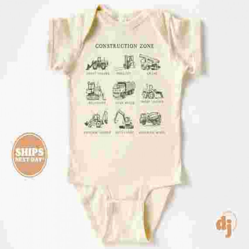 Bebek Body - İnşaat Alanı Body - Erkek Bebek Retro Natural Bebek Body #5593