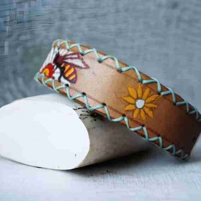 Özel El Boyalı Deri Köpek Tasması, El İşlenmiş Köpek Tasması, İşlenmiş Deri Evcil Hayvan Tasması, Ka