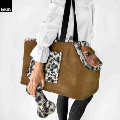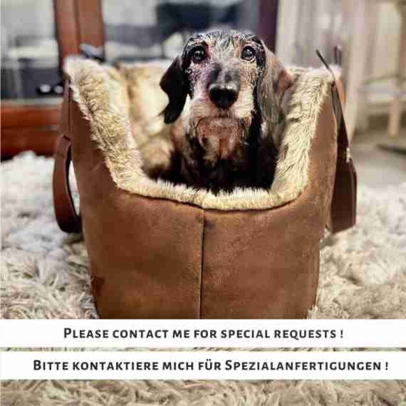 Ağırlığı 12 kg'a kadar olan köpekler için sağlam suni deriden (Alcantara) ve aslan desenli sevimli oyuncak kürkten yapılmış büyük köpek taşıyıcı. Evcil hayvan taşıma çantası (el yapımı tek seferlik), daksundlar ve uzun vücut şekline sahip diğer tüm köpek ırkları için mükemmeldir. Modern köpek seyahat çantasının yıkanabilir yastığı ve su geçirmez, güçlendirilmiş iç tabanı sevgilinize maksimum koruma ve konfor sunar. Köpek çantasının yüksek kenarları nedeniyle daksund taşıma çantası aynı zamanda seyahat ve restoran ziyaretleri için rahat bir köpek yatağı olarak da kullanılabilir --> özel bir köpek taşıma çantasıyla ilgileniyorsanız lütfen benimle iletişime geçin!
