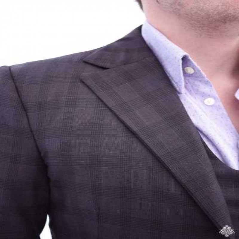 Gri Glen Kareli İki Parça Takım Süper 180'ler Yün İpek Karışımı İnceltilmiş Kıyafet Bağımsız Tasarım