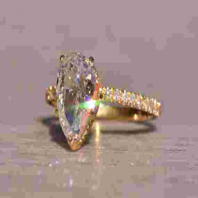 The West River: 2,12 Karat Armut Şekilli Pırlanta Nişan Yüzüğü. Yüzüğün merkezinde 2,12 karatlık armut parlak kesim doğal pırlanta bulunuyor. Elmas, Amerika Gemoloji Enstitüsü'nün berraklık derecesi Vvs1'e ve gelişmiş renk derecesi F'ye sahiptir. Elmas çok iyi cila simetrisine sahiptir ve floresans göstermez ve orijinal GIA Raporu: GIA Raporu #2221713091 ile birlikte gelir. Merkezin her iki yanında bir dizi Fransız set yuvarlak parlak kesim doğal elmas var. 0,33 karat montajdaki toplam elmas ağırlığıyla görünümü tamamlamak için hem taşın altında hem de tabanda parmakla bakıldığında gizli bir elmas halesi bulunmaktadır. Yüzük 18 ayar sarı altından yapılmıştır ve şu anda 5 3/4 parmak boyutundadır ancak talep üzerine ek ücret karşılığında herhangi bir parmak boyutuna da ayarlanabilmektedir. Harika bir keşif ve yüzük için olağanüstü bir değer!