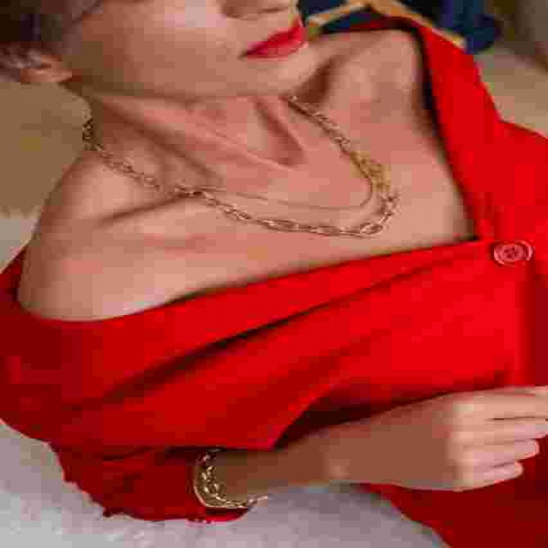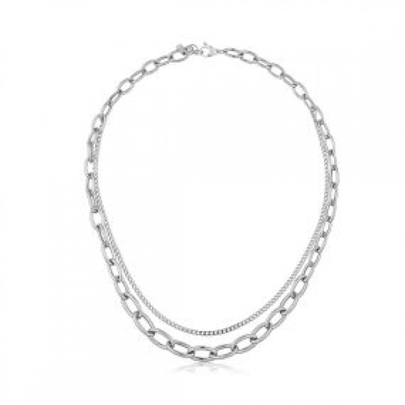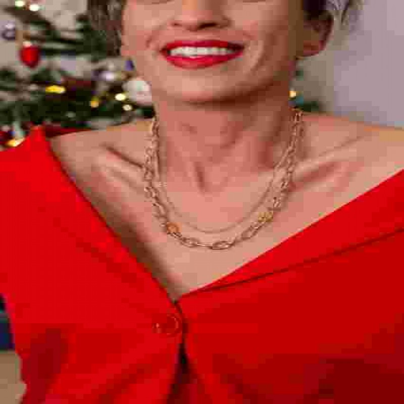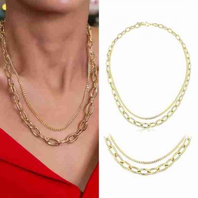 14 Ayar Altın Çift Zincirli Dereceli Bağlantılı Kolye | Oval Büyük Baklalar, Ataç ve Kaldırım Zincir