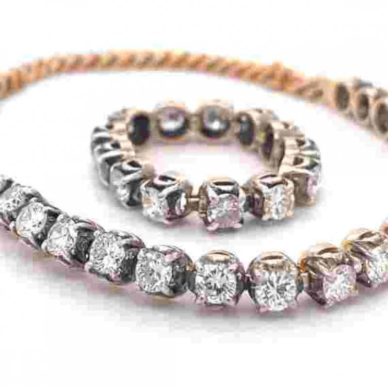Yüzük ve Bilezik Takı Seti - 3.5CT Yuvarlak Doğal Pırlanta, 18 Ayar Sarı Altın, Takı Seti, benzersiz takı seti, Kadınlar için altın takı seti, burç taşı takıları