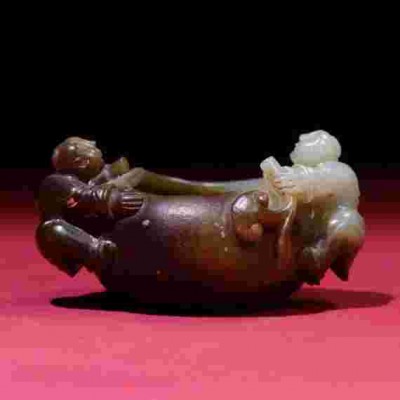 N2435 Vintage Çin Hetian Yeşim Oyma Çocuk Fırça Yıkama Makinesi