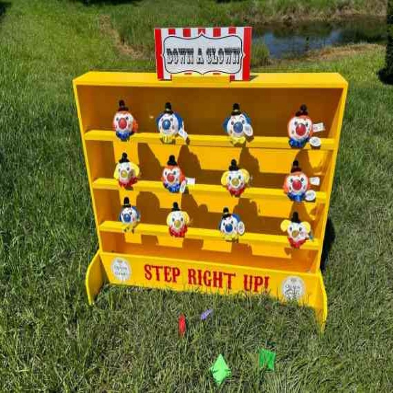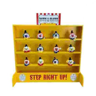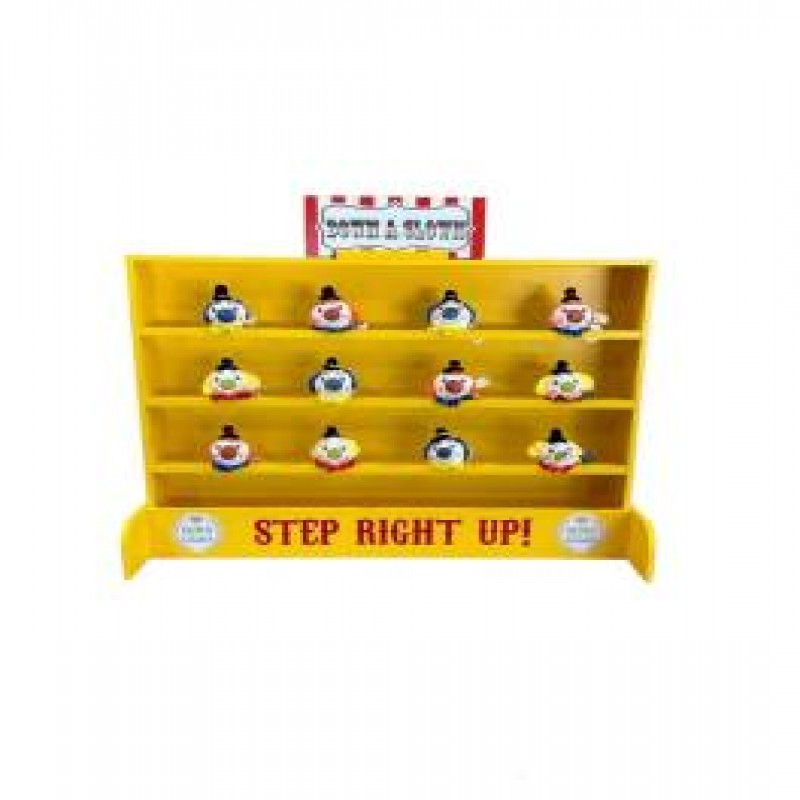 Klasik karnaval oyunu 12 palyaço ve fırlatmak için fasulye torbalarıyla birlikte gelir.