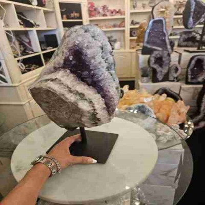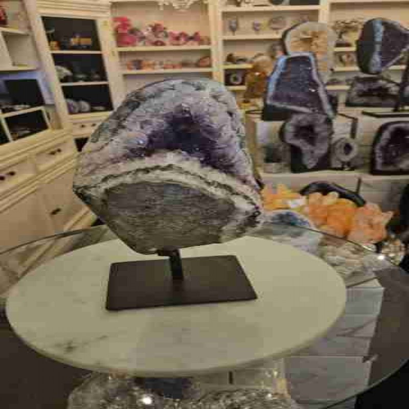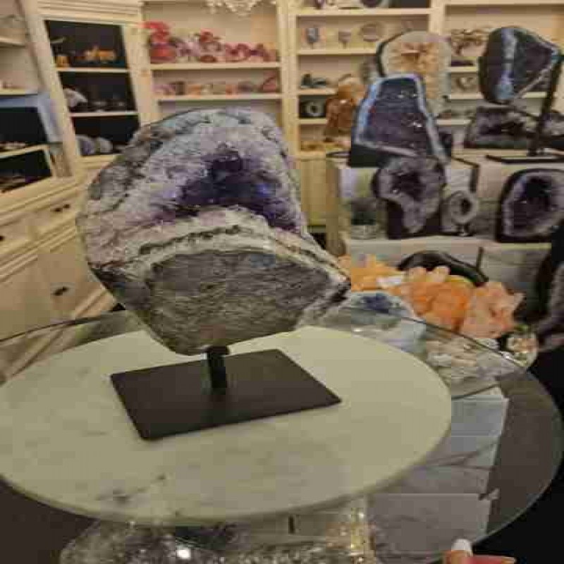 Metal Stand Üzerinde Ametist, Ametist Kuvars, Ametist Geode, Şifa Kristali, Ev Dekorasyonu, Hediye ( 1475.0 TL |