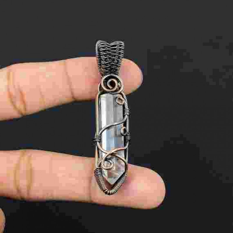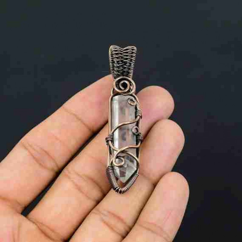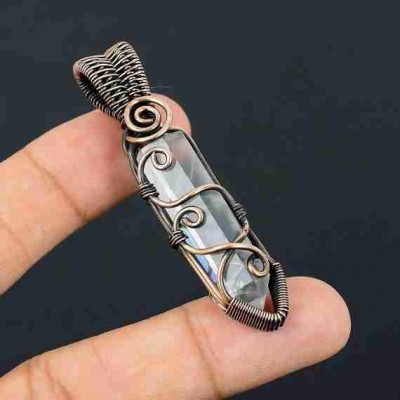 Şeffaf Kuvars Şifa Kristali Kolye Ucu, Bakır Tel Sarılı Kolye Ucu, Şeffaf Kuvars Ucu Kolye Ucu, Doğa