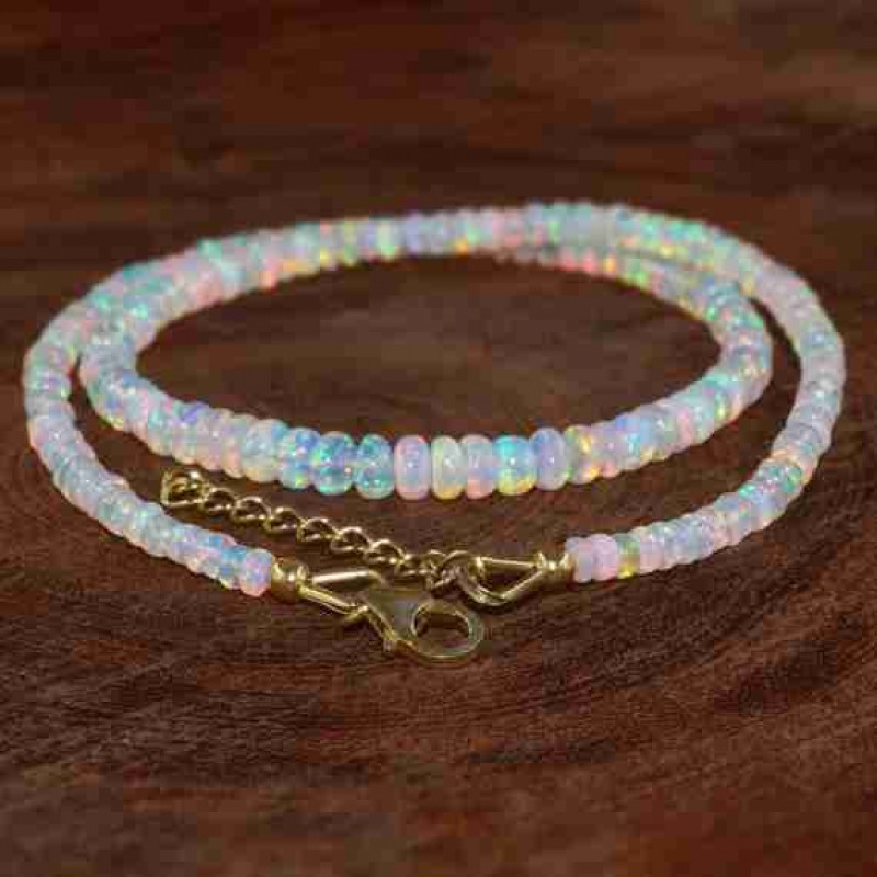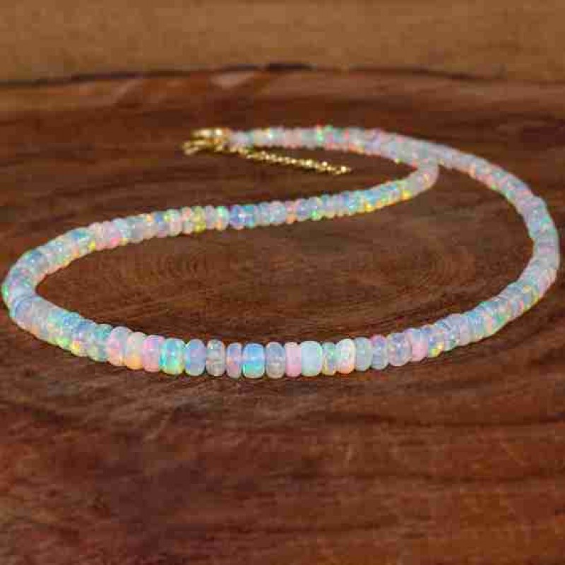 Multifire Doğal Etiyopya Opal Boncuklu Kolye, Gerçek Opal Ateş Boncukları Kadınlar İçin, AAA Opal Ko