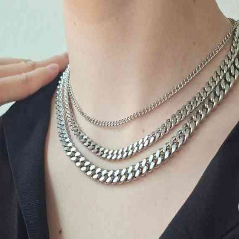 Gümüş Zincir Kolye, UNISEX Zincir, Paslanmaz Çelik Zincir, Kablo Zincir, Curb Zincir, Zarif Zincir,